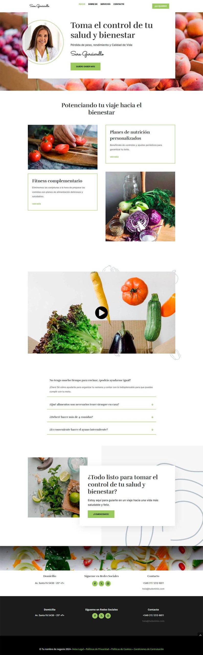 Esta demo puede servir para tu proyecto, tanto si eres nutricionista, coach en nutrición, o si ofreces algún servicio relacionado. Solo deberás modificar imágenes y textos, aunque también si quieres los colores y la tipografía.