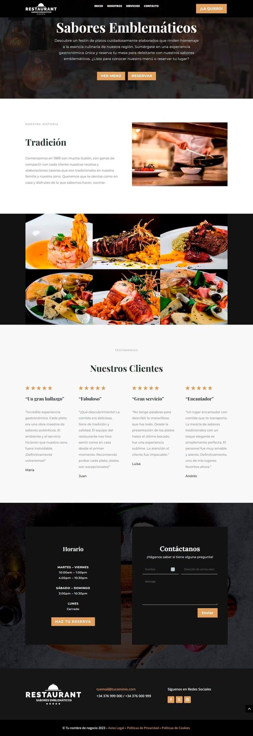 Esta demo puede servir para tu proyecto, tanto si tienes un restaurante, bar, hamburguesería, o si ofreces algún servicio relacionado con la gastronomía. Solo deberás modificar imágenes y textos, aunque también si quieres los colores y la tipografía.